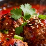 Indulge in Sweet Chili Meatballs Crockpot: tender, flavorful meatballs glazed in sweet chili sauce, crafted effortlessly in your slow cooker for a comforting, Asian-inspired meal. Prep in 15 minutes, cook for 6 hours, serves 4 with 350 calories per portion. Try it today, share your feedback in the comments or subscribe for more crockpot delights and recipe updates!