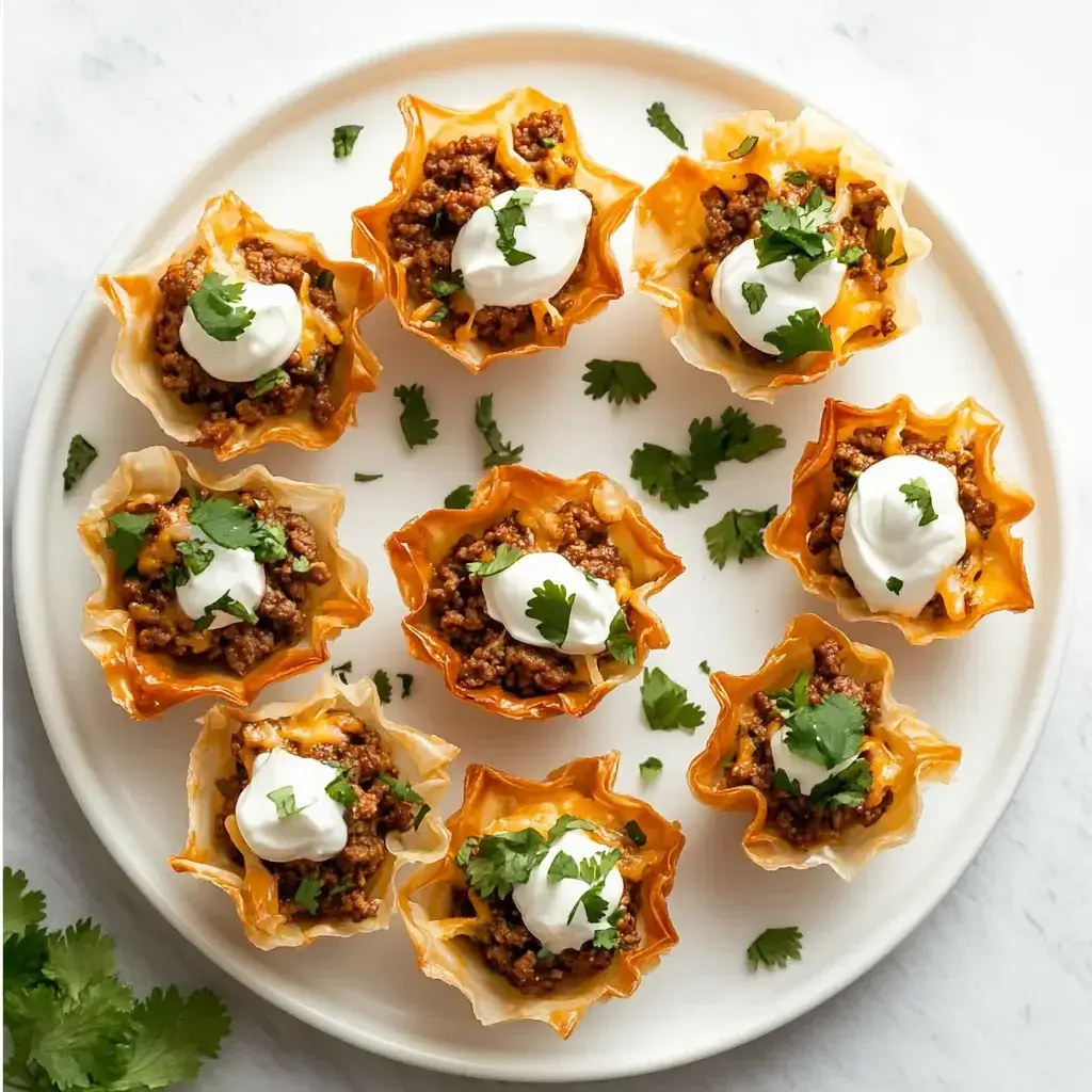 Delicious bite-sized tacos with seasoned meat filling, perfect for parties or snacks.