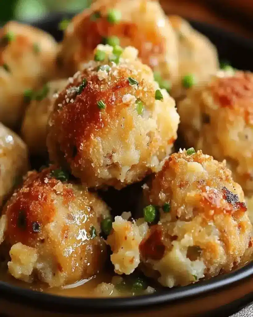 These Turkey Stuffing Balls are the ultimate holiday side, delivering a savory blend of herbs, breadcrumbs, and turkey that brings warmth and tradition to any festive gathering. Their crispy exterior and moist interior make them a crowd-pleaser that’s both easy to prepare and full of comforting flavors. For a heartier meal, try serving them alongside Dads Creamy Cheesy Au Gratin Potatoes or Cozy One-Pot Baked Rice with Chicken and Veggies, which complement the holiday theme perfectly. Feel free to vary the recipe by incorporating cranberries for a sweet twist or using gluten-free bread for a modern adaptation.
