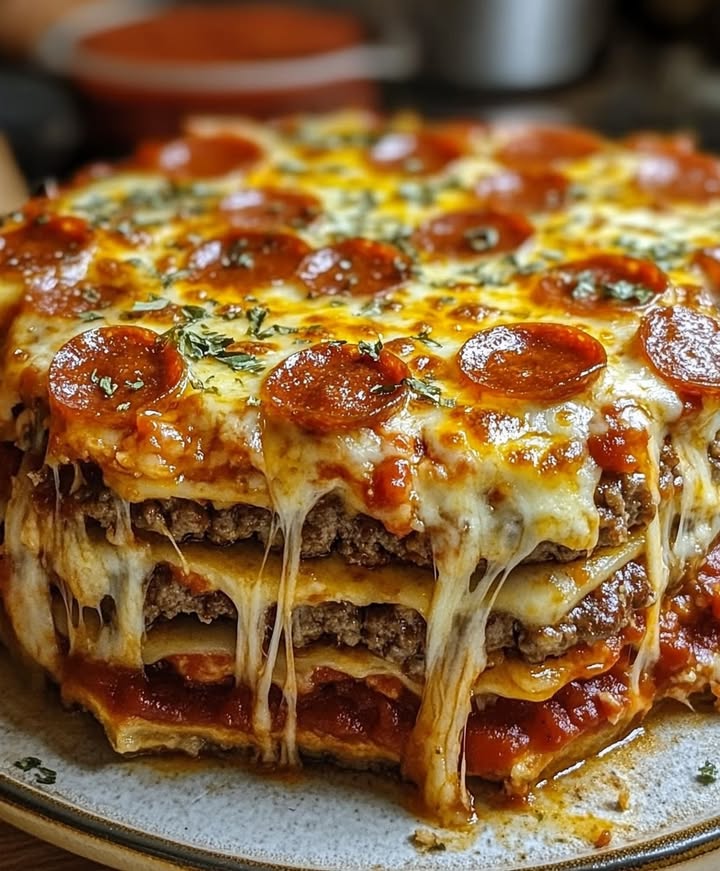 A hearty and comforting casserole that combines the best flavors of a juicy cheeseburger and a pepperoni pizza into one delicious, family-friendly dish.