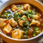 The aroma of ginger-infused broth fills your kitchen, promising a bowl of Weeknight Wonton Soup that’s rich in savory depth and delicate textures. Each homemade wonton offers a juicy, tender bite, enveloped in a thin, perfectly sealed wrapper that contrasts beautifully with the crispness of bok choy and the subtle earthiness of green onions. The flavors dance on your palate—umami from the soy sauce, a hint of nuttiness from sesame oil, and the heartiness of ground pork all melding into a harmonious, slurpable symphony. It’s not just soup; it’s a comforting hug in a bowl, with every spoonful leaving you eager for more.