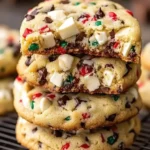 2 cups of semisweet chocolate chips and 1/2 cup of white chocolate chips are the stars, delivering that signature wintery twist with their contrasting sweetness and creaminess. High-quality chips from brands like Ghirardelli melt beautifully without seizing. These chips create pockets of gooey goodness, and if you prefer dairy-free, opt for chips made with alternative milks. Finally, 1/4 cup of holiday sprinkles adds a festive pop; choose nonpareils for better distribution, and swap with crushed candy canes for an extra holiday flair as per the recipe notes.